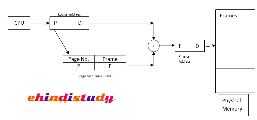 सबसे पहले सी.पी.यू. लॉजिकल एड्रेस generate करता है जिसके दो भाग होते है; पहला भाग page number होता है और दूसरा भाग offset होता है।