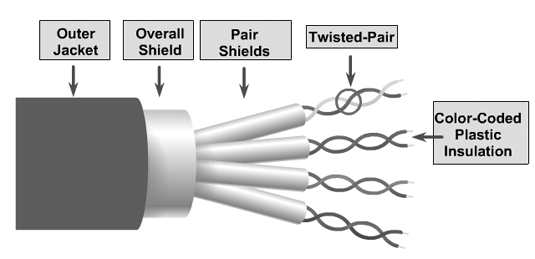 यह एक कॉपर वायर होती है जिसमें दो विधुतरोधी वायरों को एक दुसरे के मध्य लपेटकर बनाया जाता है. लपेटकर बनाये जाने से दोनों वायरों के सिग्नलों में कोई रुकावट नही आती. यह cable पुरानी टेलीफोन लाइन्स में प्रयोग की जाती है.