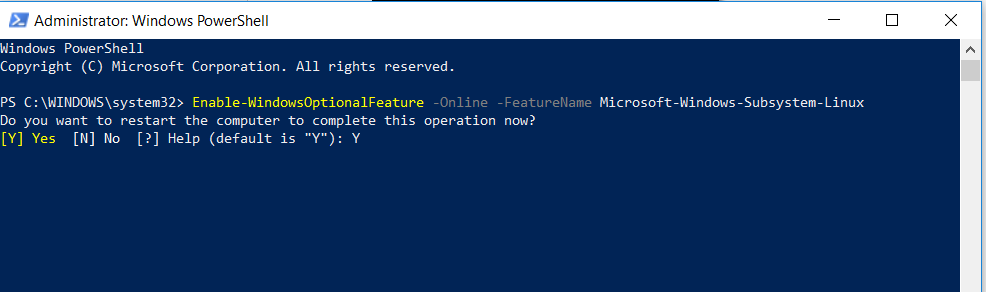 Enable-WindowsOptionalFeature -Online -FeatureName Microsoft-Windows-Subsystem-Linux