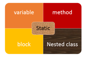 जावा प्रोग्रामिंग भाषा में, static keyword एक non-access modifier है और इसे निम्नलिखित के लिए प्रयोग किया जा सकता है:-